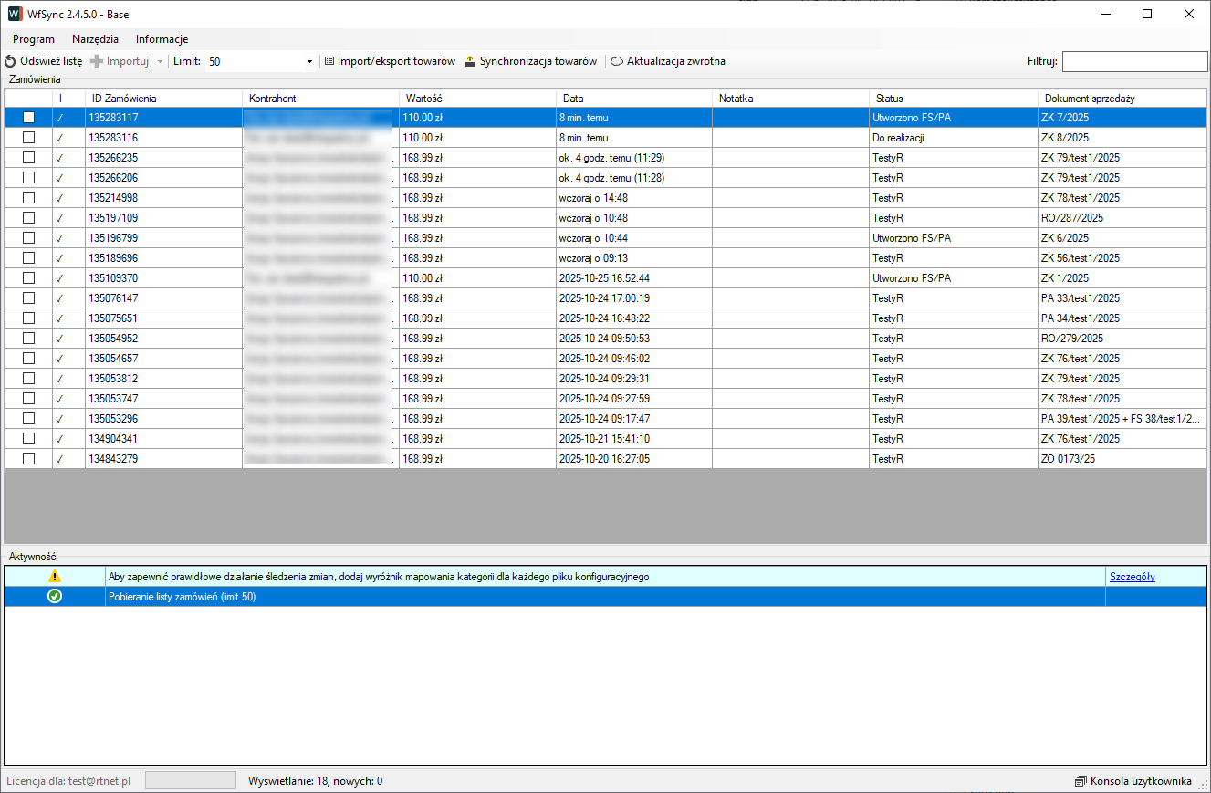 Zapoznaj się z wyglądem integratora WfSync (galeria prezentuje wersję dla Base):