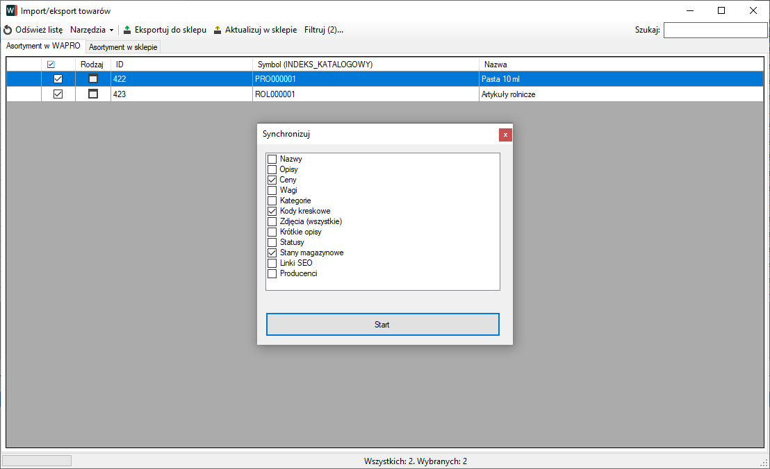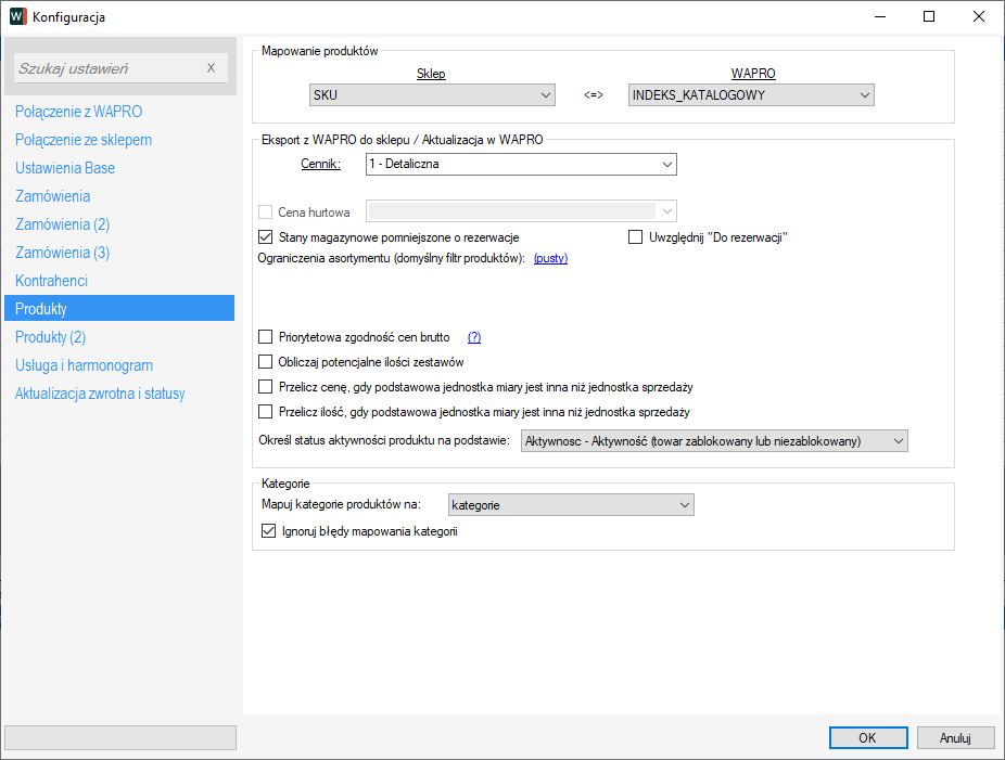 Przesyłanie stanów magazynowych z WAPRO do sklepu internetowego. Z wybranych magazynów, z rezerwacjami lub bez.