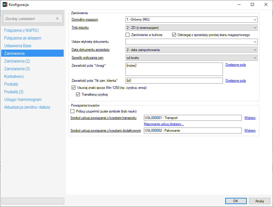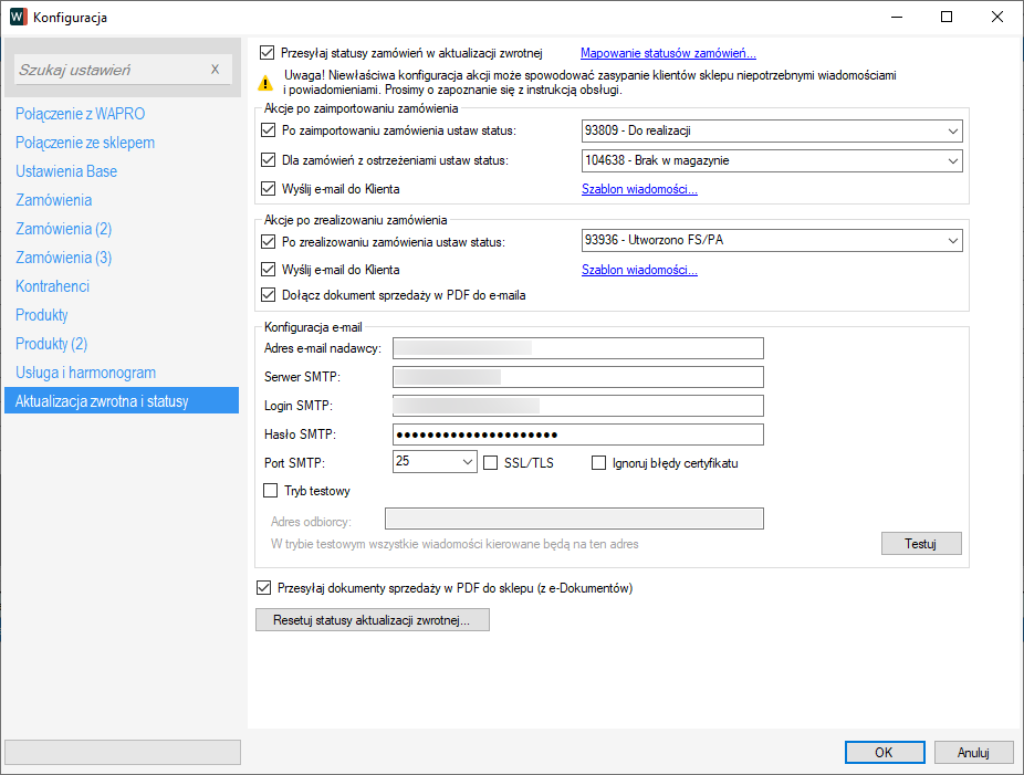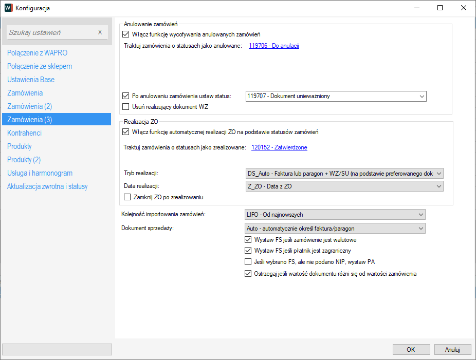 • Aktualizacja statusów zamówień po zaimportowaniu