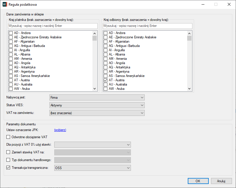 • Obsługa walut i mapowanie stawek VAT na kraje