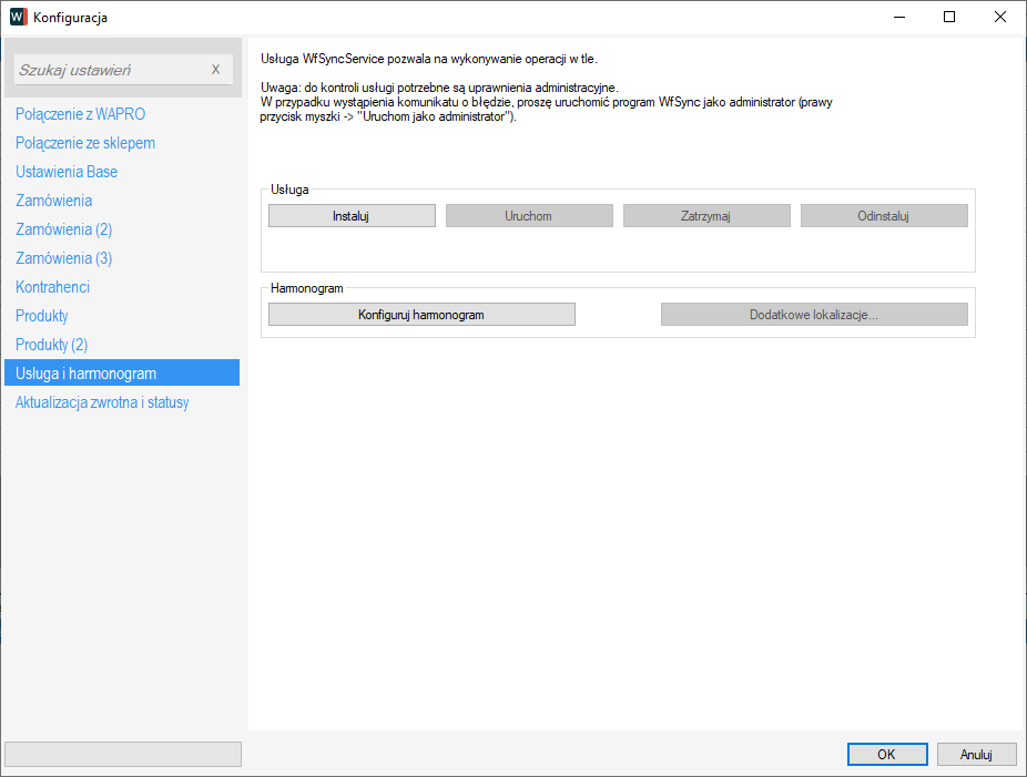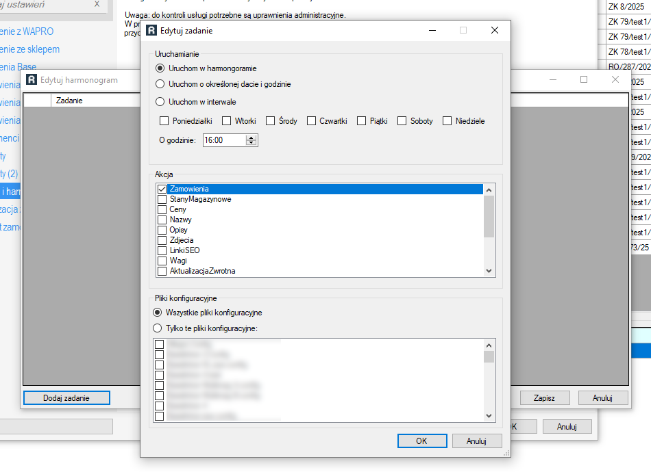 Wbudowany mechanizm harmonogramu wraz z usługą działająca w tle automatycznie wykona zaplanowane zadania, takie jak przetwarzanie zamówień czy aktualizacja asortymentu. Możesz dostosować harmonogram do swoich potrzeb, wybierając odpowiednie interwały czasowe i zadania do wykonania.